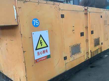 在发电机组上悬挂警告标志,将发电机组的紧急开关压下。